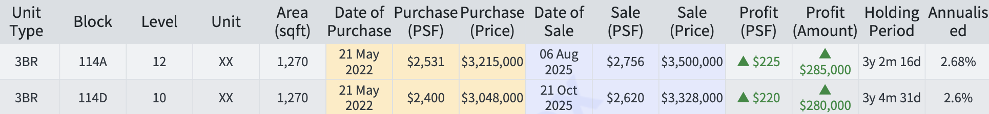 Stronger upside potential → Both Lentor Modern buyers walked away with $220k+ more in profit.