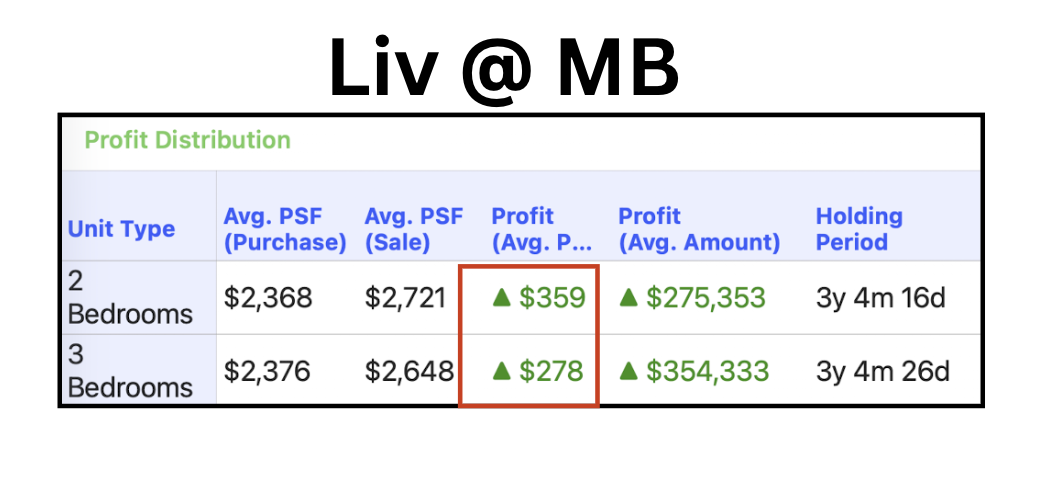 While the profits from Liv @ MB are still solid, they are more moderate in comparison.